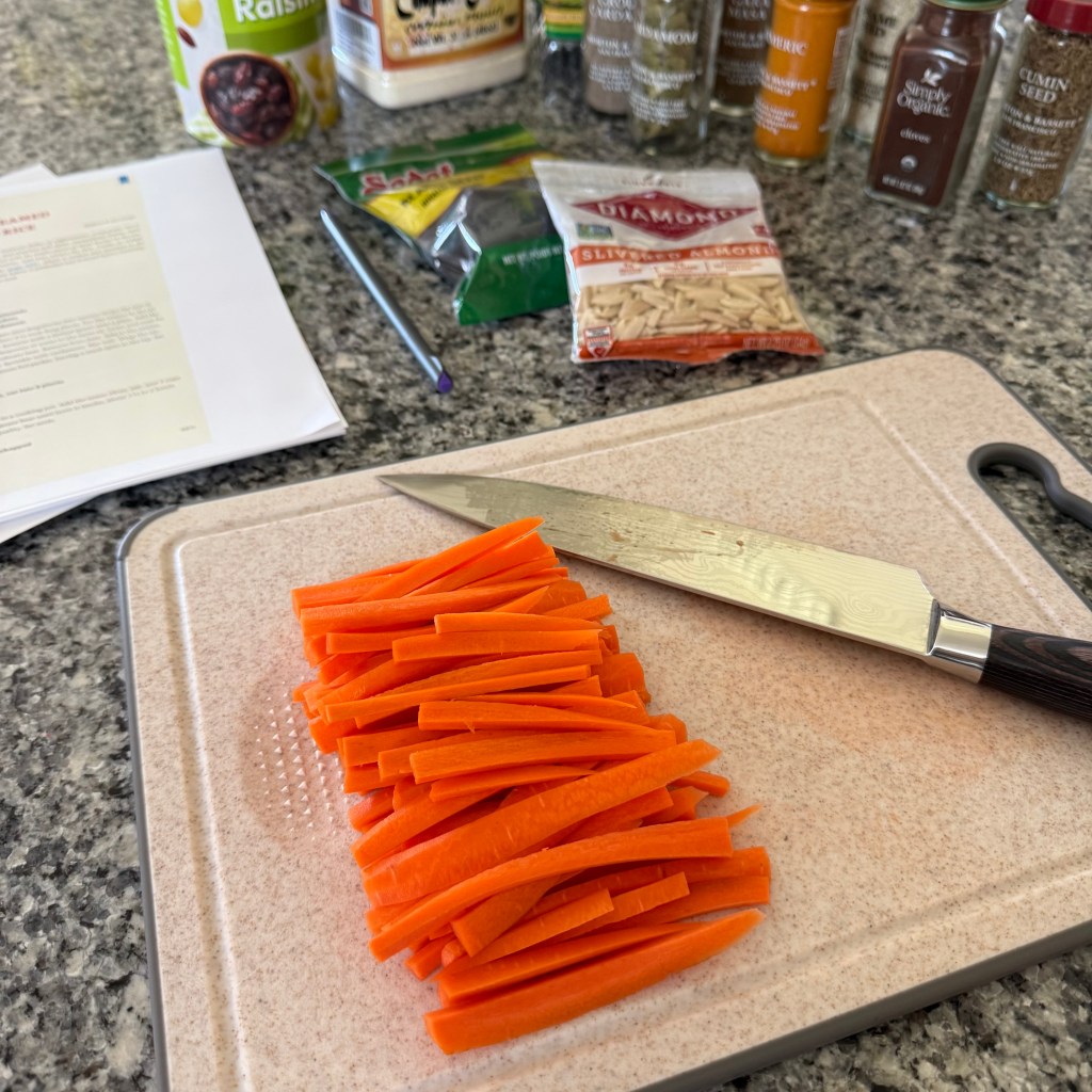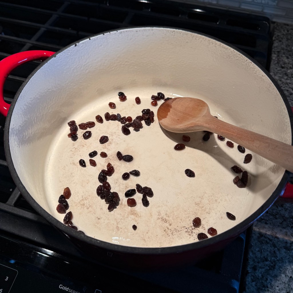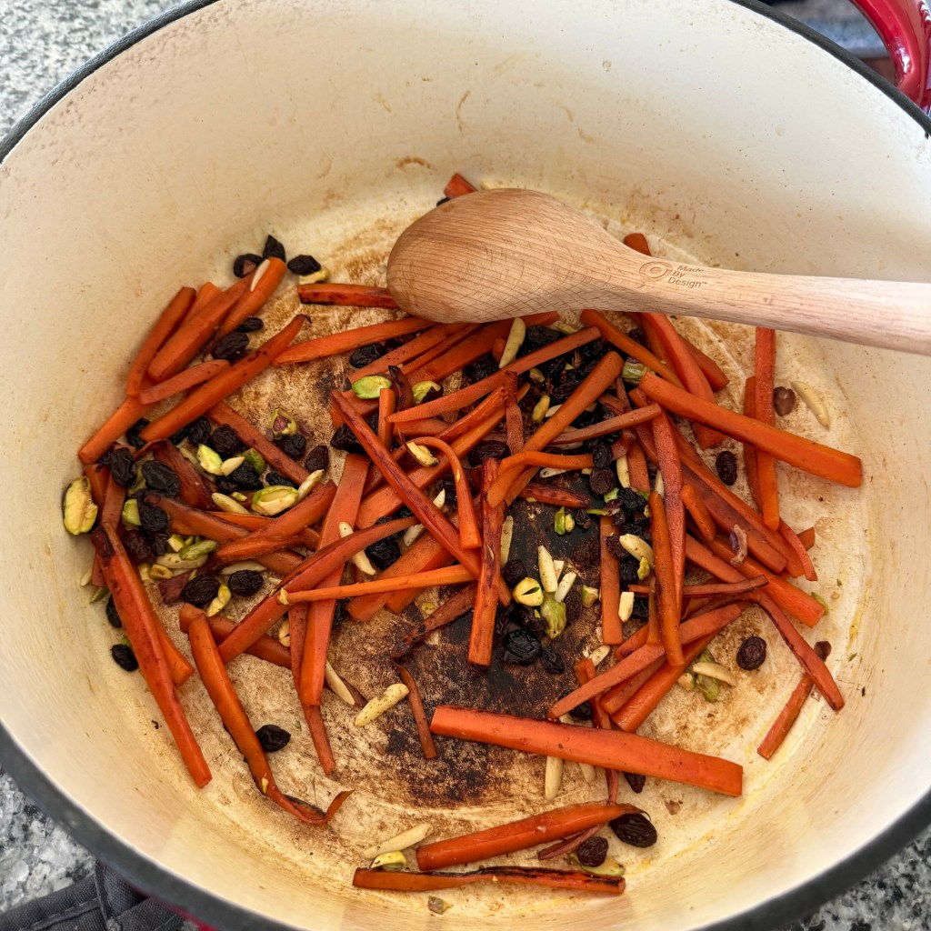 The lamb is in the oven, the carrots have caramelized, and the raisins are officially āpuffy.ā Kabuli Pulao is underway, and the kitchen smells amazing.